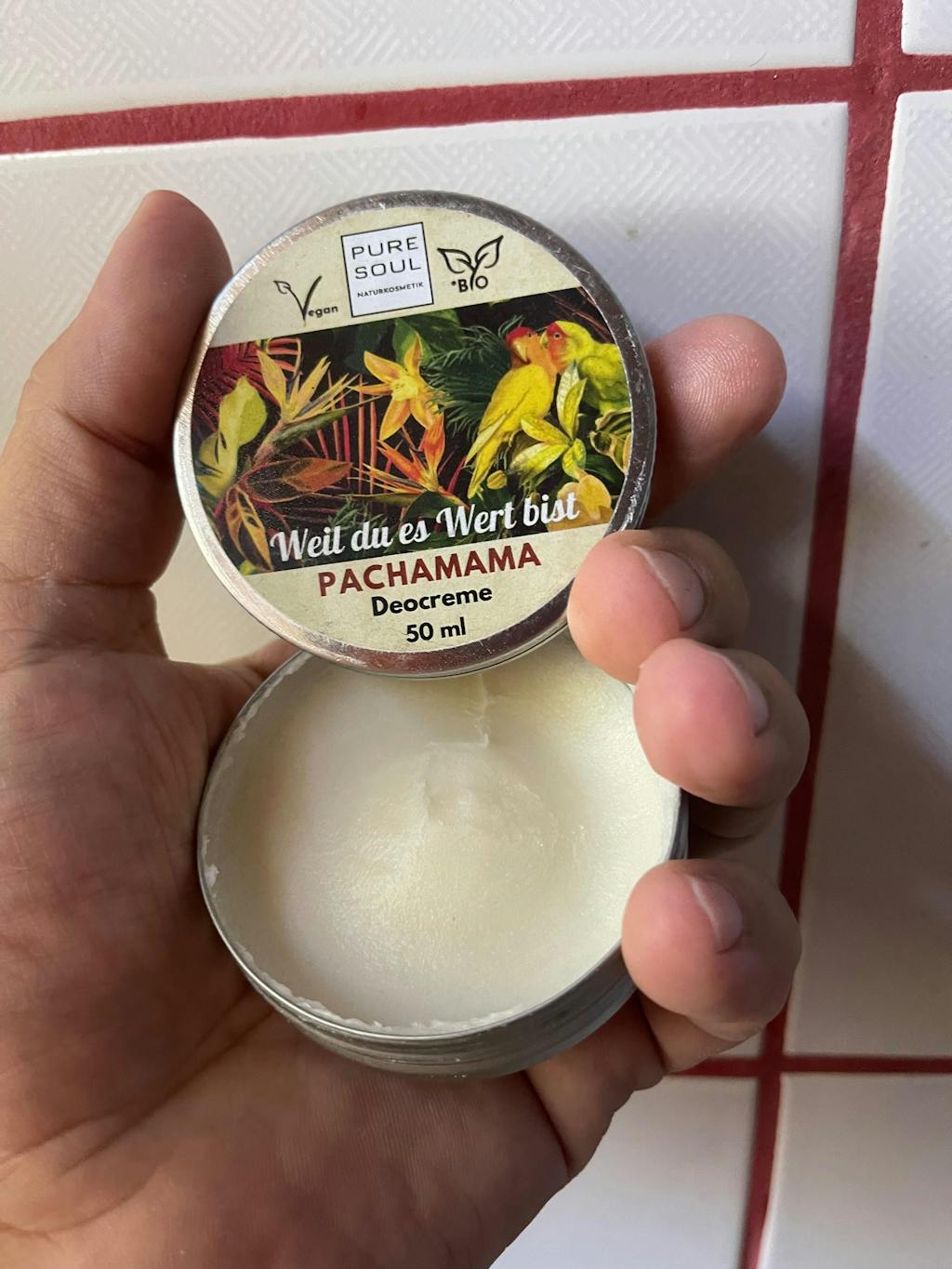 Das Deo von PURE SOUL besteht aus natürlichen Inhaltsstoffen. Du kannst das Deo ähnlich wie Schokolade behandeln. Am besten lagerst du es beim Campen an einem Ort, der sich nicht aufheizt.